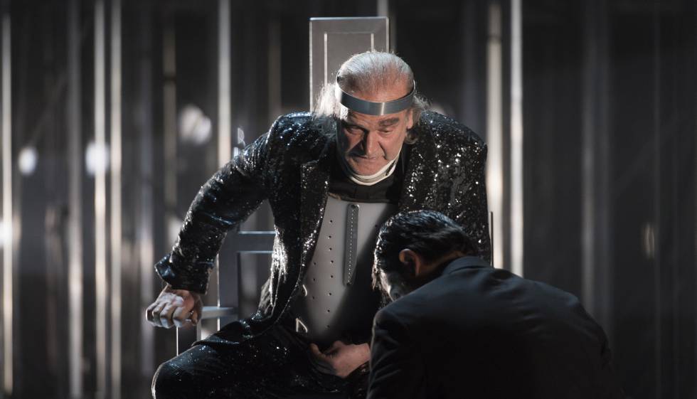 A pesar de ser la obra de Shakespeare más representada del mundo, en nuestros escenarios hacía mucho tiempos que no vemos un Ricard IIIacadémico, más allá de variaciones interesantes como la que protagonizó Quim Àvila con dramaturgia de Gerard Guix. En este caso, sólo por ver a Lluís Homar interpretar un personaje tan jugoso y emblemático, todo el montaje ya vale la pena. El veterano actor demuestra su talento interpretativo llevándose toda la atención con la complicidad del director Xavier Albertí que le deja un gran espacio de lucimiento. Divertido, lleno de matices, trágico y perverso, cada monólogo del rey deforme resulta una verdadera lección y un placer hipnótico. Desgraciadamente, la sobriedad de la propuesta, en algunos momentos, resulta demasiado fría y monótona. Además de algunos fragmentos con pinceladas de humor bastante simpáticas, se agradece cada vez que algún recurso estético (cámaras u otros elementos) rompe con la línea aséptica por la que camina el espectáculo. En el reparto, por suerte, encontramos también ciertas figuras que destacan por su fuerza emocional y que, junto con Homar, generan los momentos más vibrantes y sobrecogedores. Ellas son las soberbias Julieta Serrano, Carme Elias y Anna Sahun. El vestuario y escenografía, también bastante sencilla, transmiten una elegancia y una oscuridad adecuadas para el tono de la obra, del mismo modo que el inquietante y perturbador espacio sonoro. En definitiva, se trata de una pieza contundente, con fragmentos memorables y, en general, muy satisfactoria incluso con los aspectos antes mencionados que, de ser mejorados, podían haber dado más vida a todo el conjunto.
